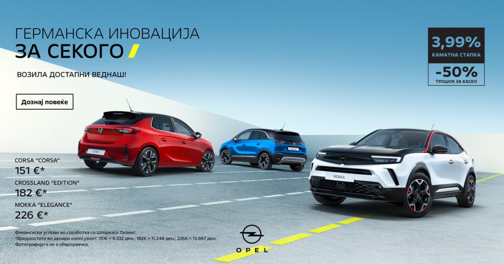 Пролетна Opel акција Возилата од лагер со посебни услови на финансирање. Генералниот увозник за Opel Еуроимпекс и нивната дилерска мрежа низ Македонија во соработка со Шпаркасе Лизинг изготвоја посебна понуда за возилата на лагер. Да добро прочитавте, возила од лагер! Со фиксната камата од 3,99% и 50% попустот на каско осигурување за моделите Opel Corsa, […]