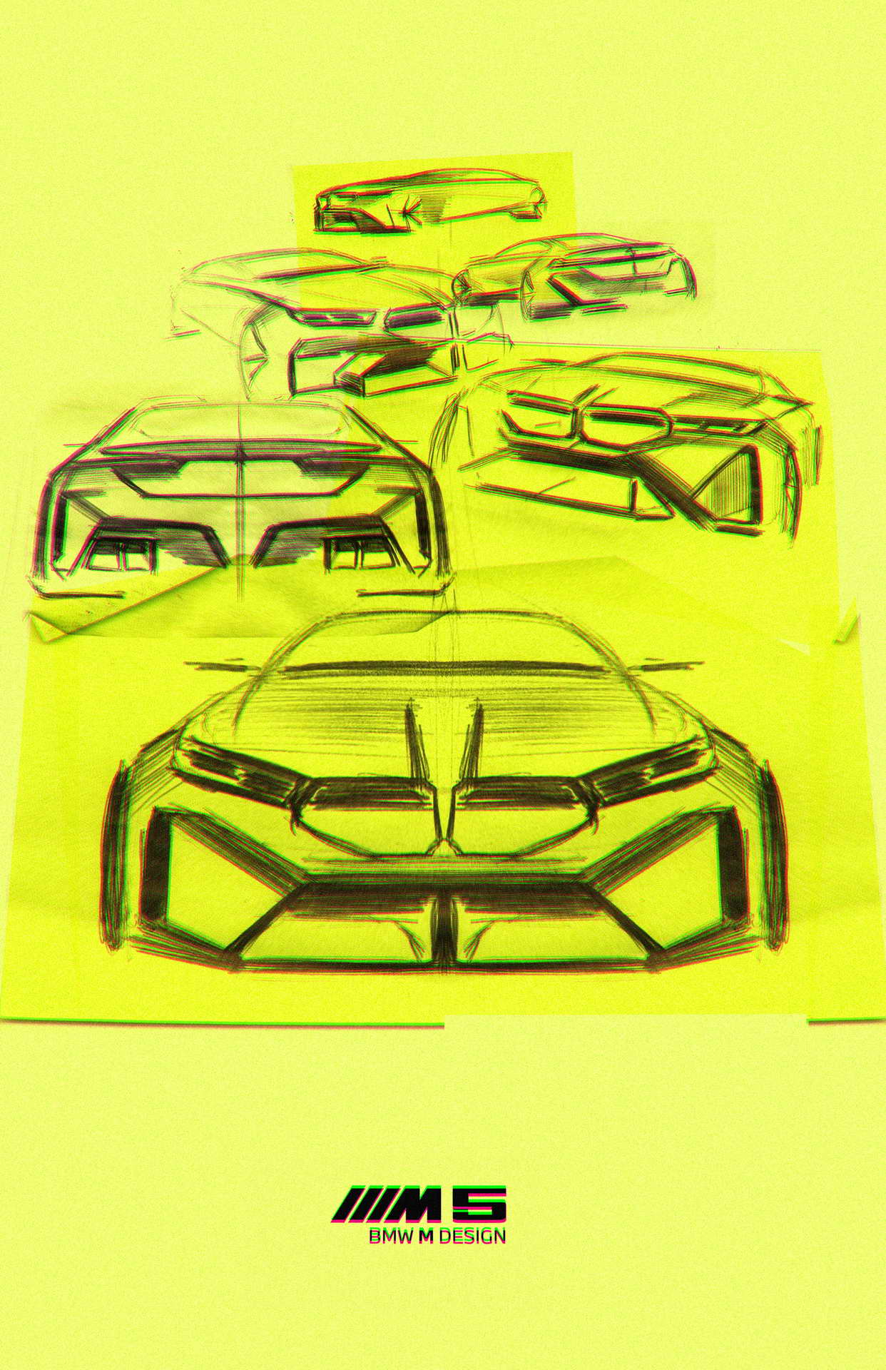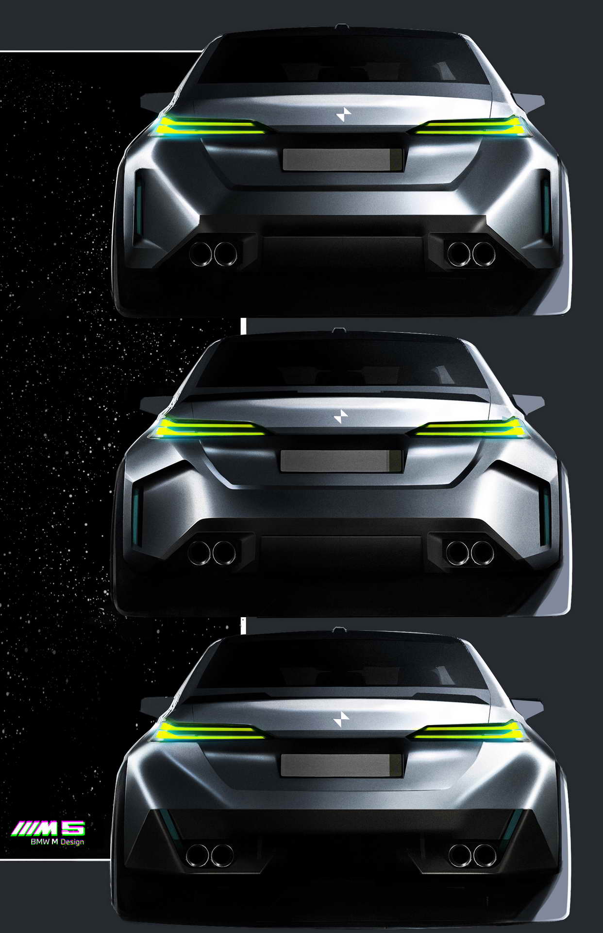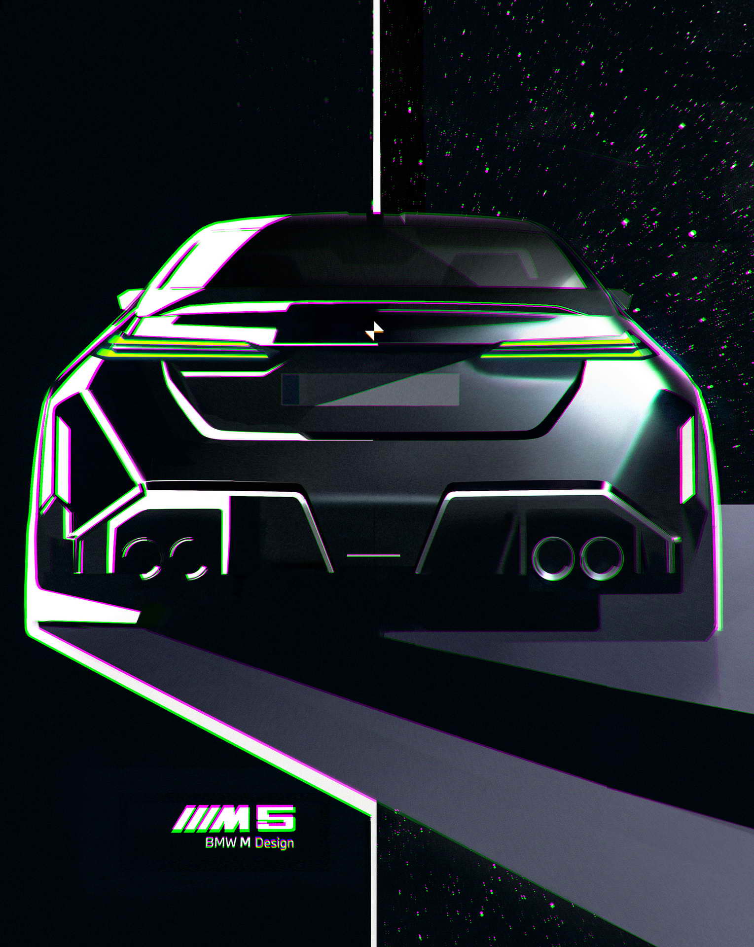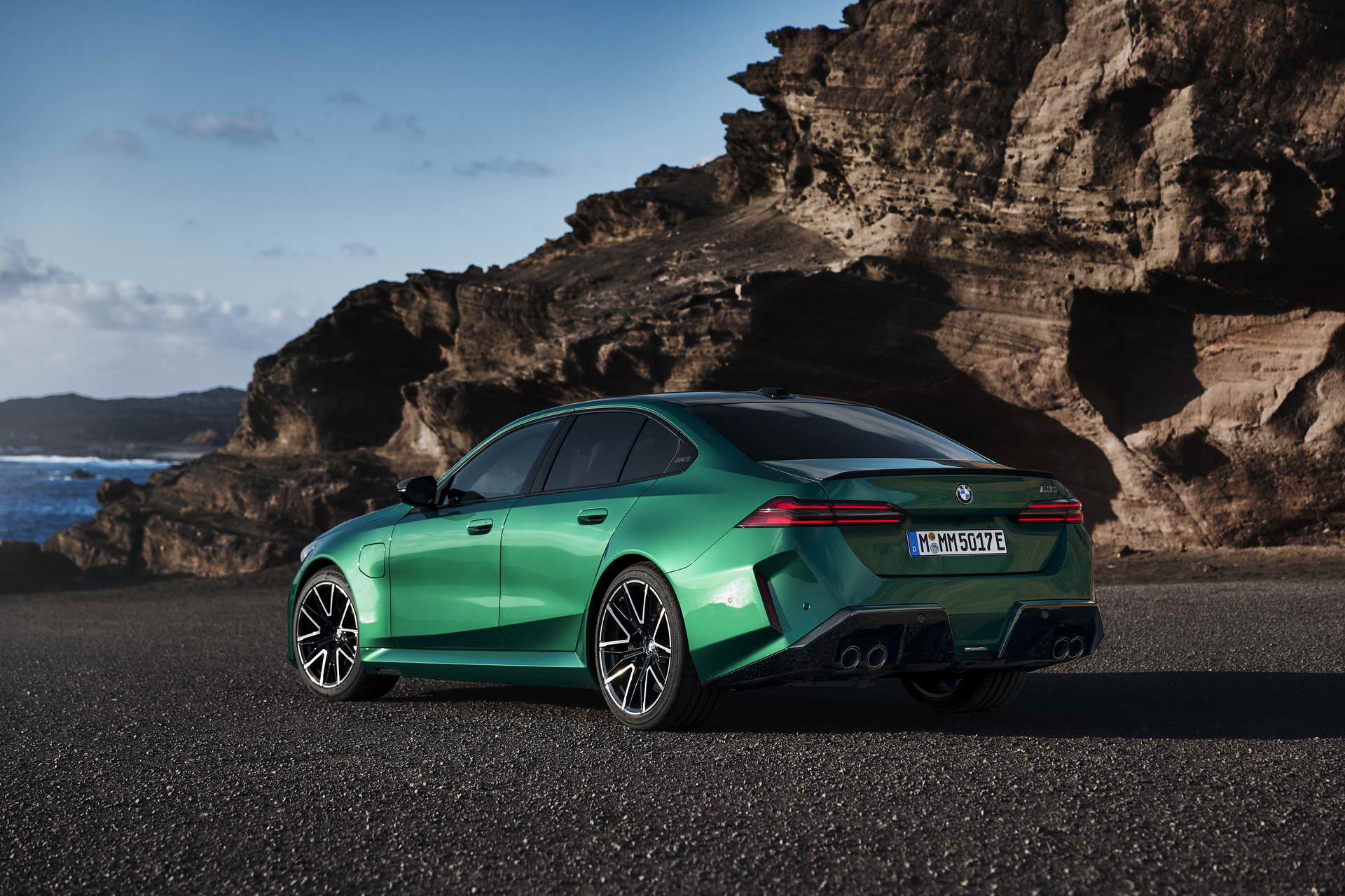Што се однесува до дизајнот, BMW и овојпат се поигра со бубрезите. Маската сега има црн дизајн со затворени делови во средина зад кои се сместени системите за помош во возењето, а нејзината рамка може да биде осветлена. Крилата се проширени за да се сместат тркалата со пневматици со димензии 285/40 ZR20 напред и 295/35 ZR21 назад, зад кои се наоѓаат сопирачките дискови од 410 односно 398 милиметри кои со доплата можат да бидат керамички. Бруталноста на техниката назад ја покажуваат М-спојлерот и двојните црни издувни цевки. Во однос на стандардната серија 5 внатрешноста се разликува по мултифункционалните седишта како компромис меѓу удобноста на големи дистанци и држењето на телото во спортско возење, новиот дизајн на управувачот, специфичното амбиентално осветлување и стандардниот Bowers & Wilkins Surround Sound аудио систем, а кој сака може да нарача и карбонски покрив.