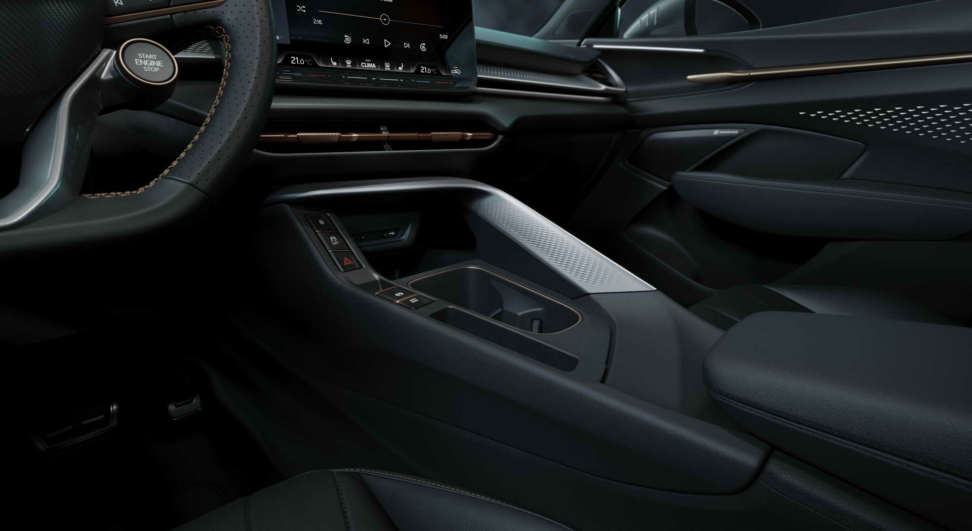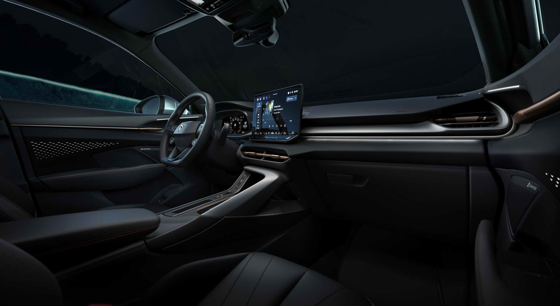 Внатрешноста е оригинална и се среќаваат само мал број сличности си другите модели, било од сопственото семејството, било од роднинските марки. Инструмент таблата е дигитална, мултимедијалниот систем има екран од 12,9 инчи а менувачот е на столбот на управувачот. Централниот тунел обликуван како да е свртен накај возачот има мал број прекинувачи и панел за безжично полнење на телефон. Предните седишта се со интегрирани наслони за глава, а задната клупа се  поместува со што багажникот од 540 ќе порасне на 630 литри.