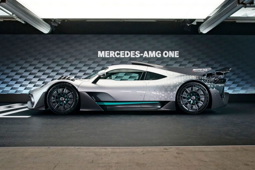За овој проект партнер на кого му е доверено производството е Multimatic лоциран во Ковентри. Хибридниот погон базиран на технологијата Формула 1 се состои од 1,6-литарски V6 турбо и четири електромотори. Хиперавтомобилот со плагин хибриден погон има системска моќност од 1.063 КС (782 kW), со кои AMG One забрзува до стотка за 2,9 секунди. Подеднакво импресивни се останатите податоци за спринтерските можности во кои се тврди дека 200 км/ч се постигнува за седум секунди, 300 км/ч за 15,6 секунди, а максималната брзина е ограничена на 352 км/ч.