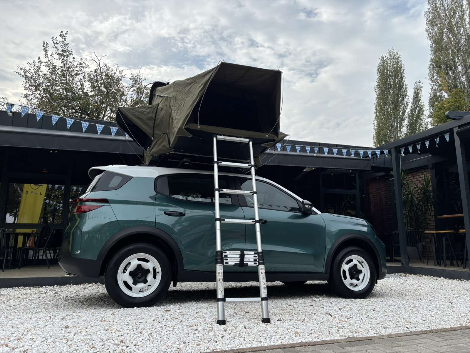 Таа е агилна на асфалтот, доволно просторна, но и стокмена за да одговори на повремените пориви за излети во природата. Тоа најдобро го покажува со шаторот кој се монтира на покривот, идеална солуција за куси кампувања вон урбаните средини. Двата изложени експонати, едниот во промотивната Kanyon портокалова боја во GS ниво на опременост, а другиот во Edition ниво на опременост, со впечатлив и необичен дизајн на Khaki зелена боја, бел кров, плус за дополнителен ретро шмек, челични тркала во бела боја.