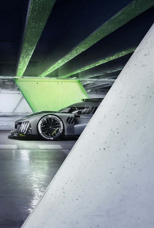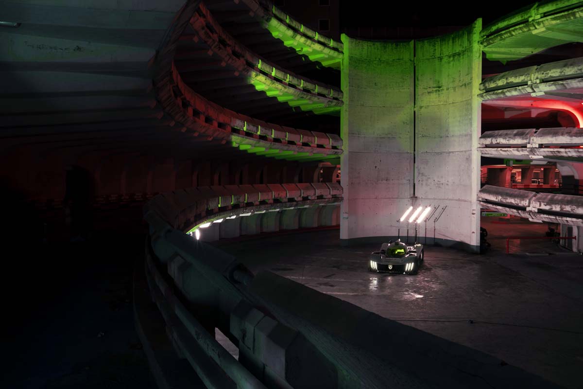 Поставувањето на Peugeot 9X8 во бруталистичка архитектура за да го покаже својот револуционерен дизајн е проследено низ објективот на модната фотографка Агњешка Дорошевич. Предизвикувачкиот дизајн на болидот и атмосферата создадена низ играта на форми и светло резултира со фотографии кои се метафора за престојниот предизвик на „24 часа Ле Ман“, легендарна трка во која светлината се менува како одминуваат часовите. Да не заборавиме дека на овој тест на издржливост за возачите и болидите.